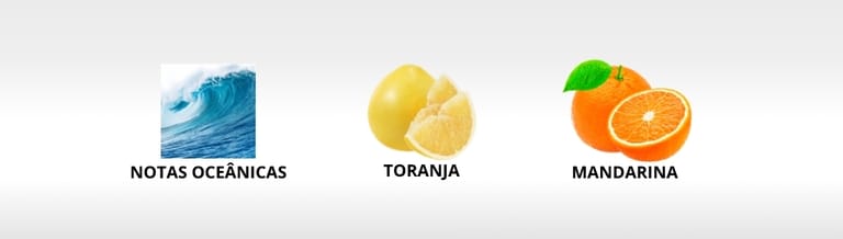 • Frescor cítrico e oceânico que traz energia e vitalidade desde a primeira borrifada